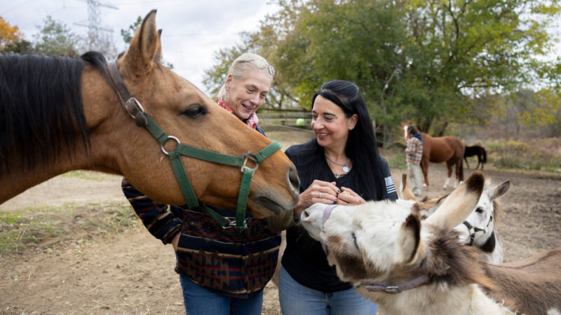 Hartline’s longtime friend and volunteer facilitator, Elisabeth “Bg” Khouri, helps care for the horses and lead sessions alongside her.