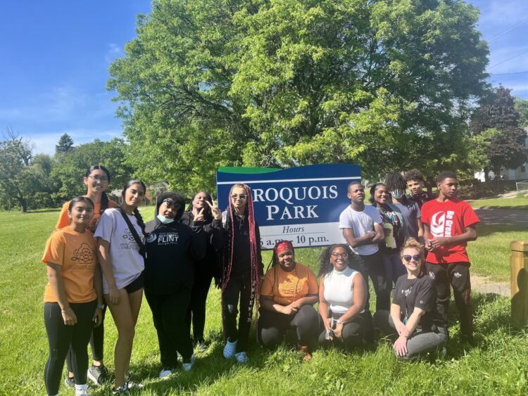 In 2024, the CFGF Youth Advisory Committees and the Flint Center for Educational Excellence gathered at Iroquois Park to help with a community cleanup and beautification project with KGCB.