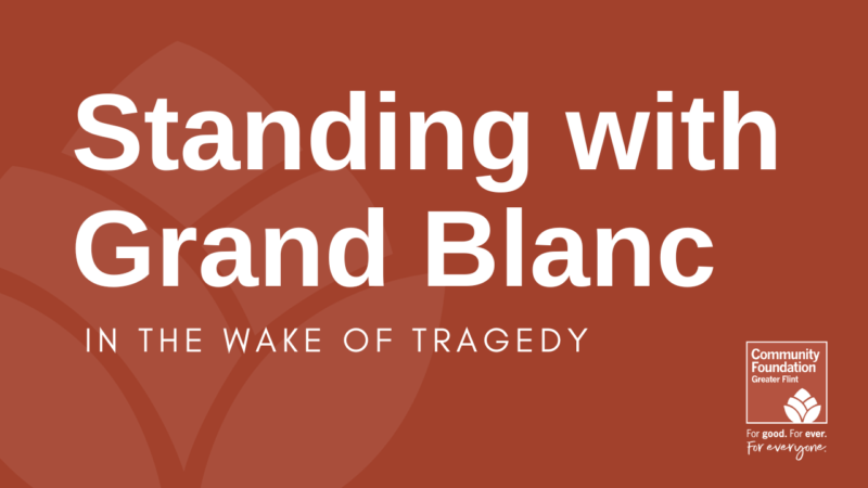 The Community Foundation of Greater Flint is heartbroken by the mass shooting that took place Sunday morning at The Church of Jesus Christ of Latter-day Saints in Grand Blanc. We extend our deepest condolences to the victims, survivors, their families, and all who are grieving in the wake of this senseless act of violence.