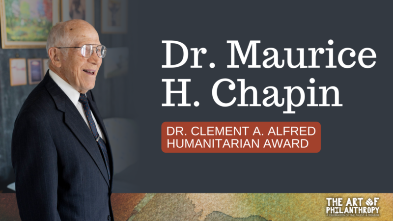 Dr. Chapin and his late wife, Beverly Gould Chapin, raised six children and established two endowed awards: the Beverly A. Gould Chapin Endowed Music Award, in memory of Beverly, a music teacher, and the Dr. Maurice H. Chapin Pre-Medicine Endowed Award for pre-med students.